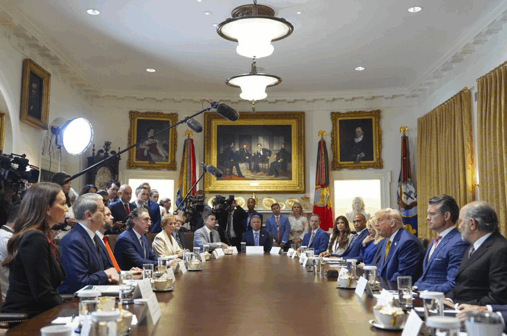 It was a cabinet meeting unlike any other in American history. It was very long — all three hours and seventeen minutes of the spectacle were televised — and brimming with extravagant praise for the MAGA leader. While such stuff would not be at all unusual in foreign regimes headed by dictators, this one was all American. In the Cabinet Room of the White House.